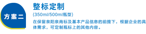 兩種定制方案靈活可選,為您量身定做企業專屬的長白山天然礦泉水,展現企業個性,彰顯企業文化,提升企業形象,助力商務成功!